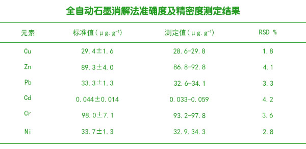 全自動石墨消解法準(zhǔn)確度及精密度測定結(jié)果